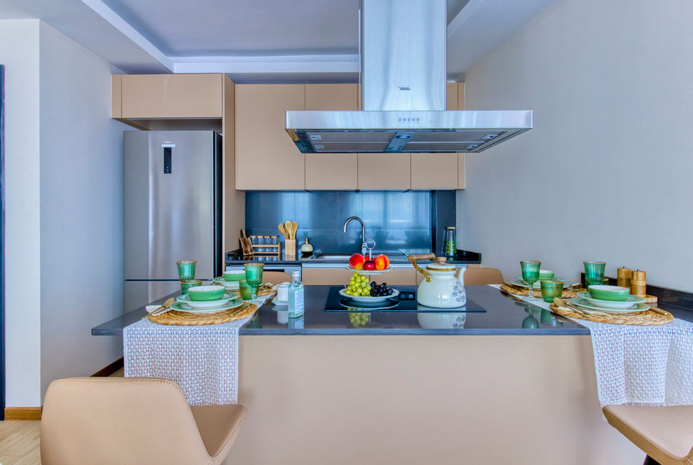 Prime 1+1 apartments create a modern living space by combining a spacious living room and kitchen. Designed with care in every detail, this space offers comfortable and stylish living, while the bedroom provides an ideal environment for rest and relaxation.